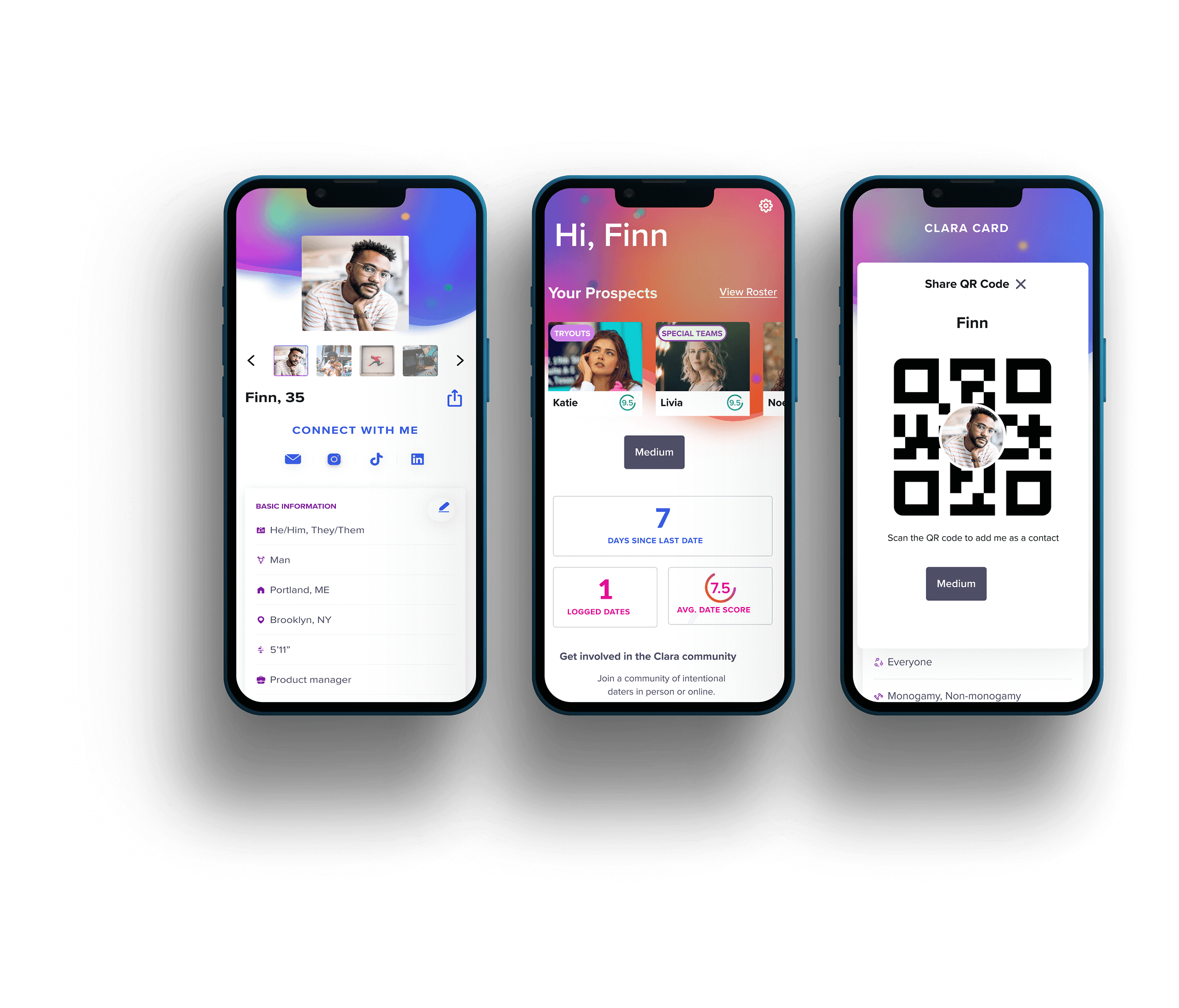 We integrated features which included a Clara Card, Prospect Logging and Post-Date Journaling. The Clara Card enhanced user profiles to include values and desired partner attributes, facilitating deeper self-reflection. The prospect logging feature enabled users to track and assign statuses to potential matches, aiding in the organization of their dating journey. Lastly, Post-Date Journaling provided a space for users to reflect on their dates, encouraging thoughtful evaluation of compatibility and experiences.